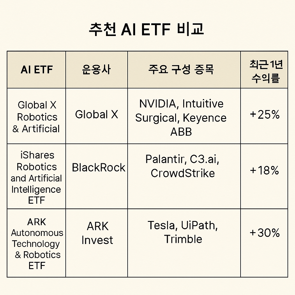 특히 AI 산업은 기술 변화 속도가 빠르고, 산업 구조도 계속해서 진화하고 있기 때문에 전체 흐름을 따라가면서 분산 투자할 수 있는 ETF는 초보 투자자에게도 부담이 적은 선택이 될 수 있습니다.